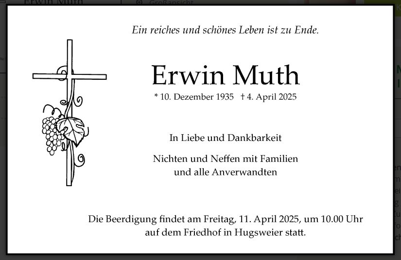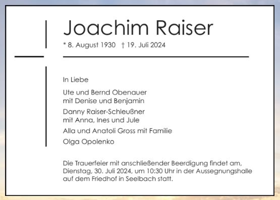 Wir nehmen Abschied von einer geachteten Persönlichkeit,