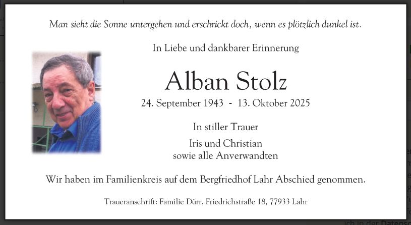 Wir nehmen Abschied von einer geachteten Persönlichkeit,